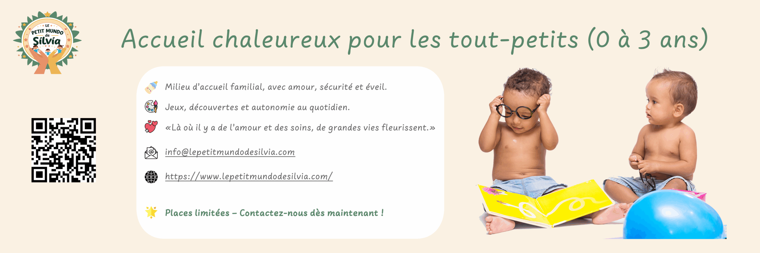 Plongez dans l’univers chaleureux du Petit Mundo de Silvia à travers des photos de nos différents espaces : coin repos, salle de jeux, jardin sécurisé, espace repas et plus encore. Un environnement pensé pour le bien-être et l’éveil des tout-petits, de 0 à 3 ans.